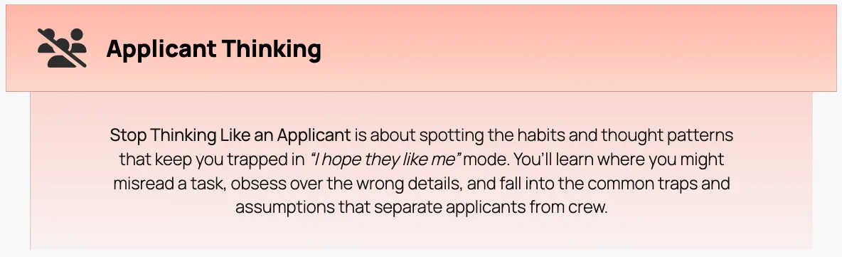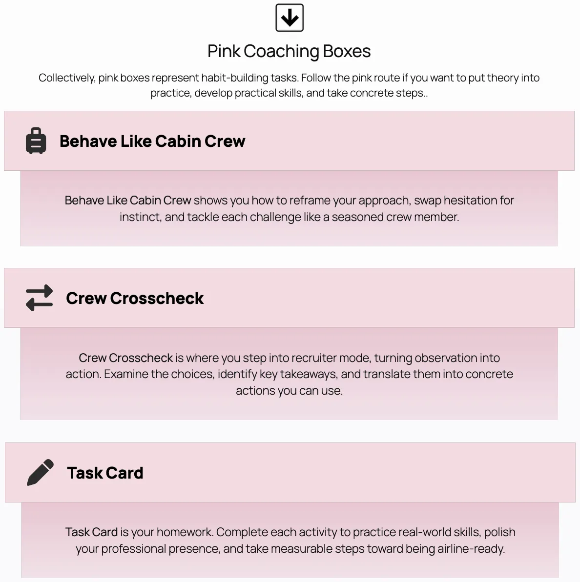These approaches don’t just train learners to pass the interview, but to reframe and enjoy the process as another part of their cabin crew journey.